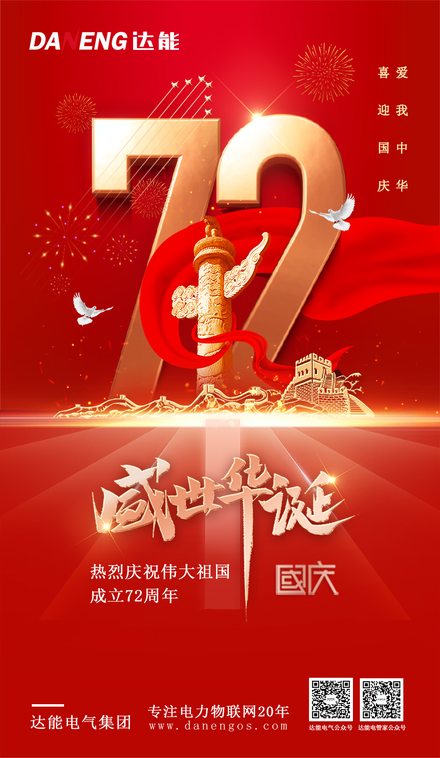 锦绣中国,盛世华诞,举国同庆,共祝中华!天降祥瑞山河红,耀显泱泱大国兴。mksport体育电气集团热烈庆祝祖国成立72周年,祝愿伟大祖国繁荣昌盛!