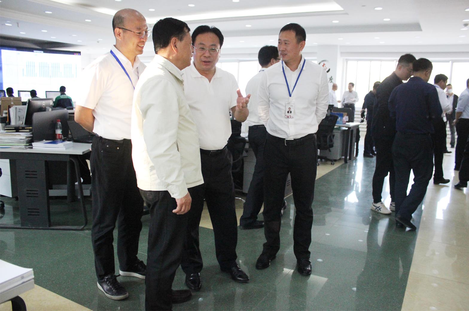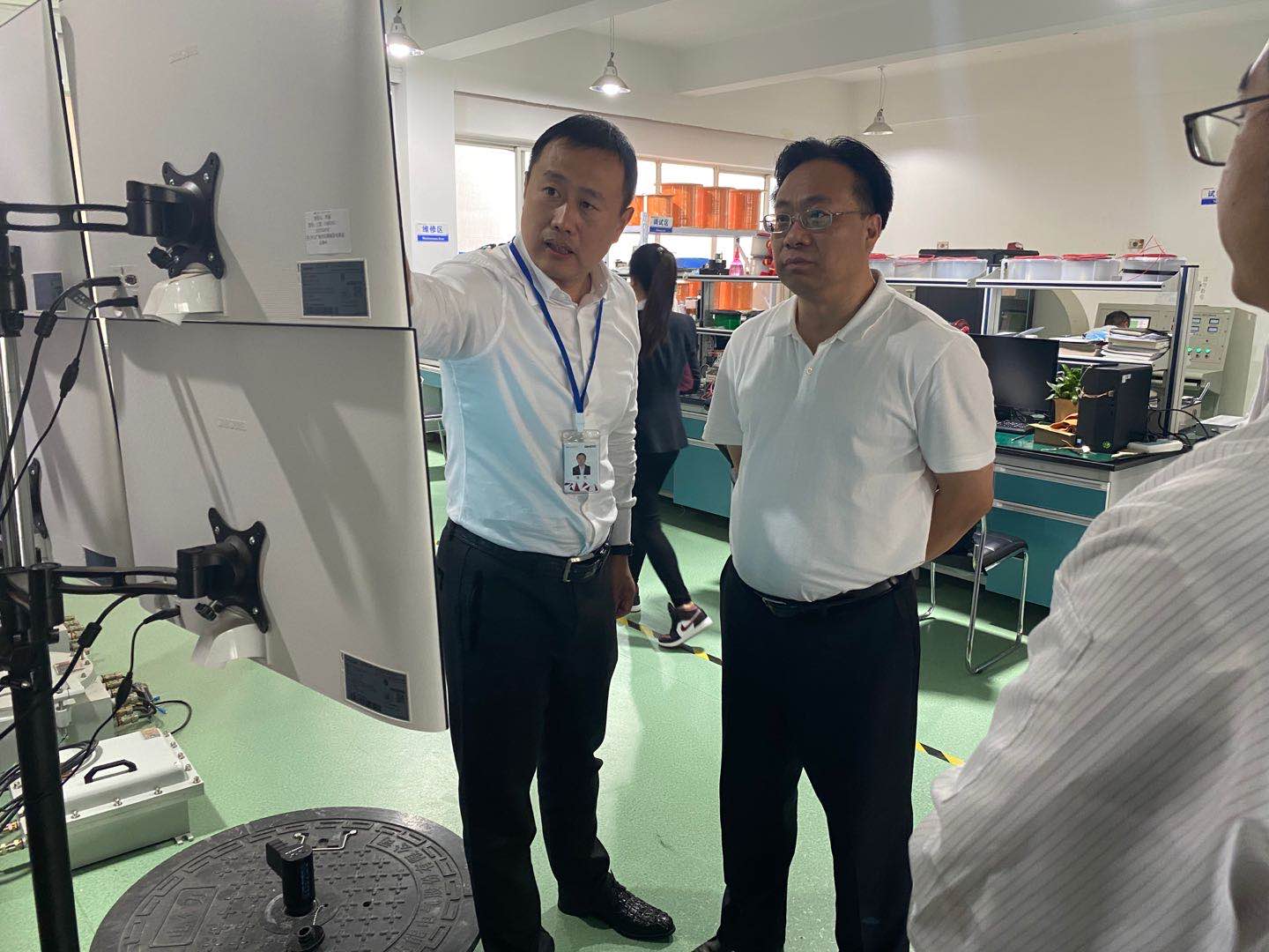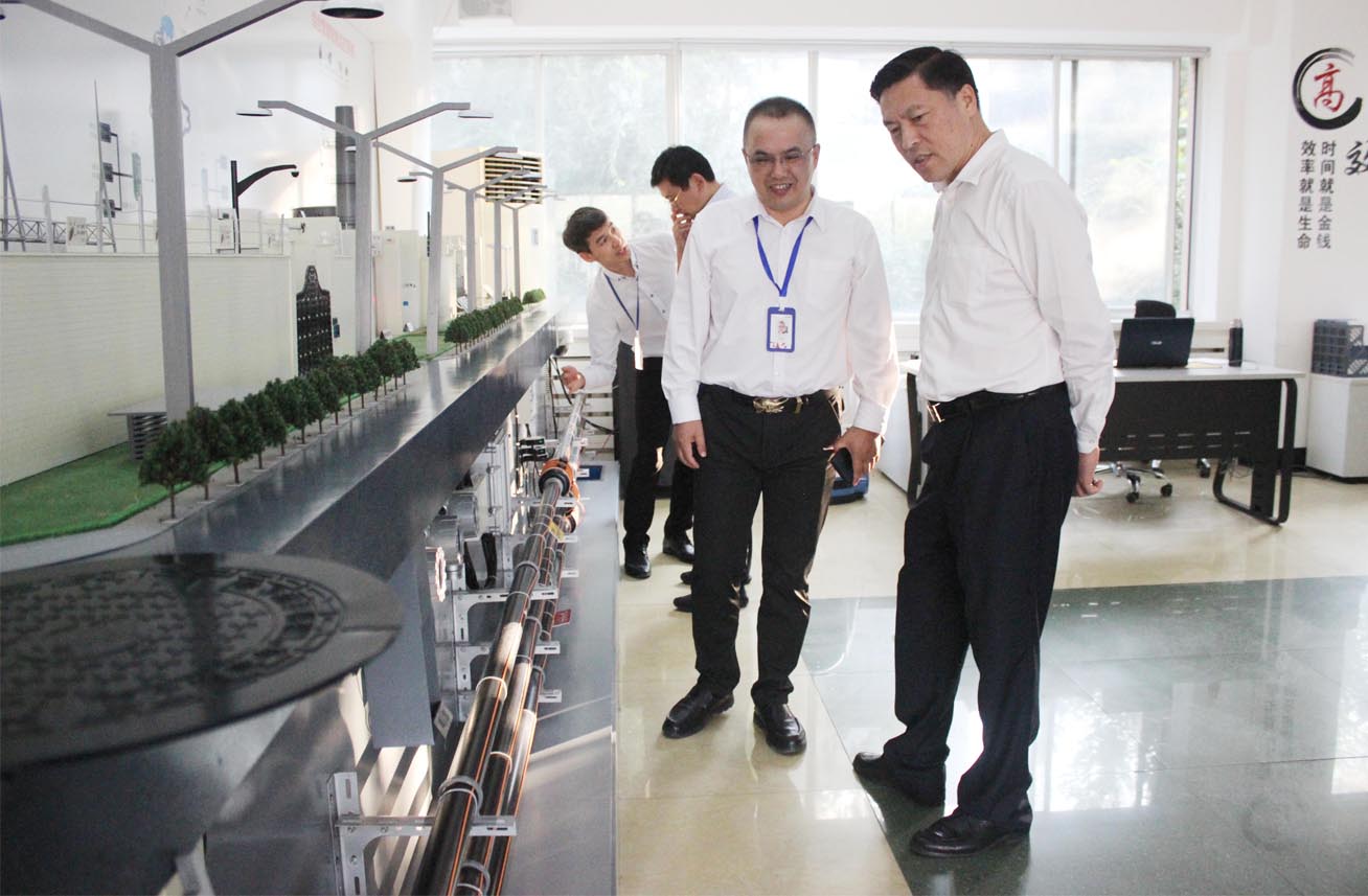 高艺董事长、关慧明总裁、资本总裁李顺及公司精英骨干陪同相关领导一起参观了公司光电测控工程技术研究中心、电力安全监测预警平台、软硬件技术研发中心、城市综合管廊系统模型等,并现场观看了电力数据服务云平台演示。