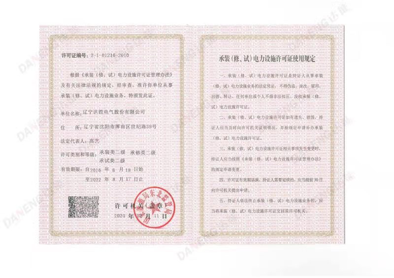 包括此次升级为二级的承装(修、试)电力设施许可资质,mksport体育电气具备消防设施工程专业承包资质;建筑智能化工程专业承包资质;ISO9001质量管理体系认证;辽宁省安全技术防范实施设计施工资质;信息系统集成及服务资质证书等各类专业资质证书,拥有百余项国家发明专利和软件著作权等自主知识产权。mksport体育电气可以为客户提供不同种类的专项解决方案和服务,以专业、正规、高效的业务水平为客户创造价值。